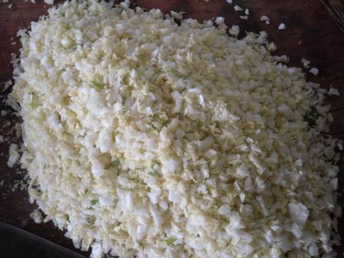 4,白菜倒入搅拌好的猪肉馅里拌匀备用。