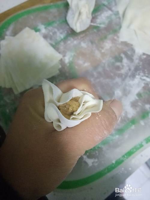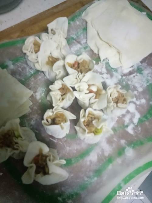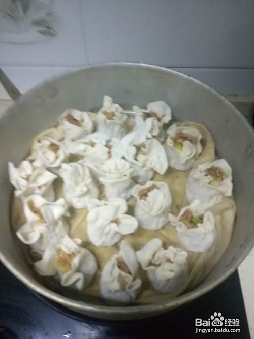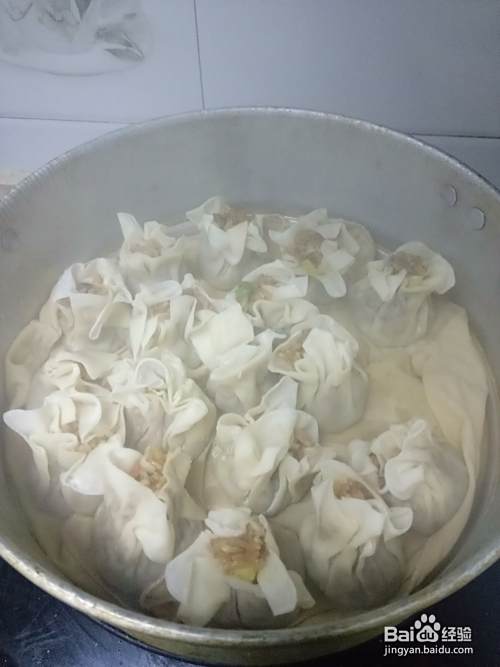 先把饺子皮一张张的分开,全部粘上一些面粉,接着三张叠在一起,擀压成薄一些的面饼,面饼擀压好以后,把馅放入其中,这时利用手的虎口,捏出烧麦的形状。全部包好后摆放在蒸锅上,盖上盖子蒸20分钟左右就可以了。水烧开后换中火蒸,蒸的时候一定要观察蒸锅内的水够不够。