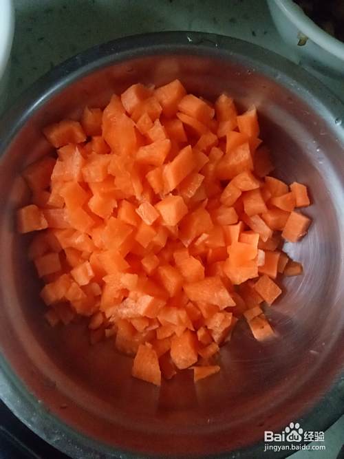 胡萝卜洗净后切成小丁,香菇、木耳提前浸泡好以后清洗干净切碎。豌豆解冻后控干水分,瘦肉剁成肉糜,糯米提前几个小时浸泡好以后放在蒸锅上蒸熟,把蒸熟的糯米放在一个大碗中。