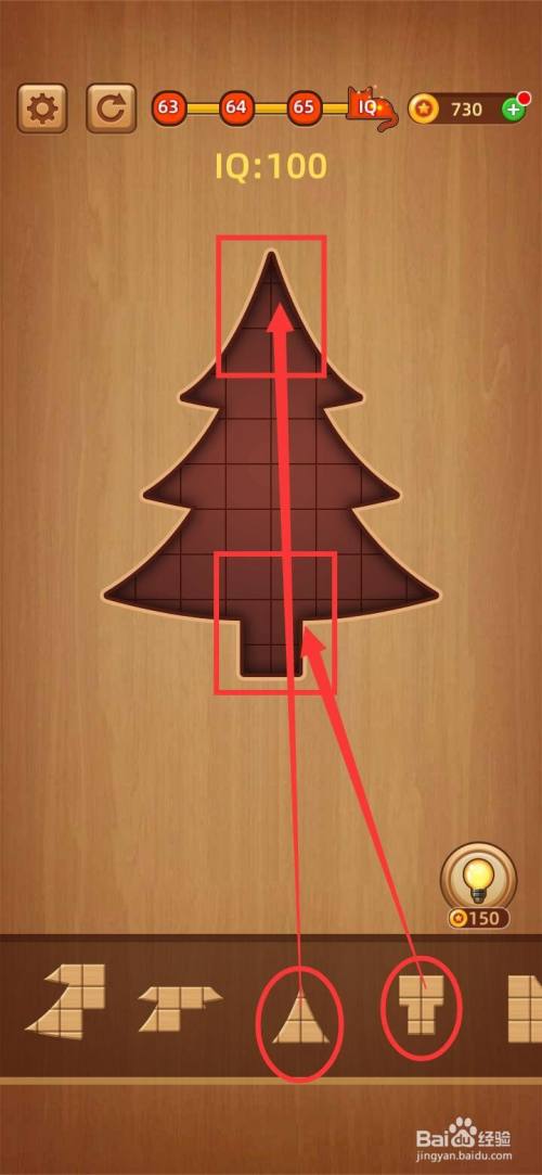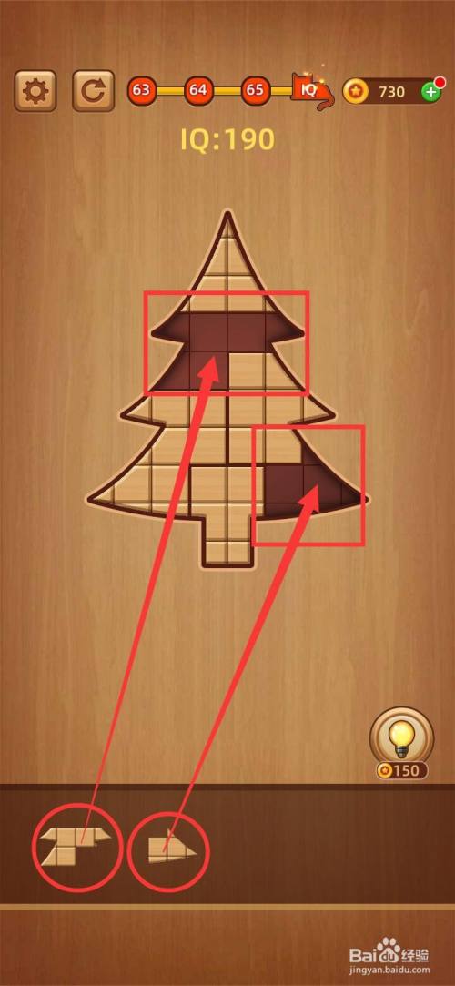 三是把最后两块小拼图到天才挑战之方块拼图LV.66圣诞树剩下的缺口即成