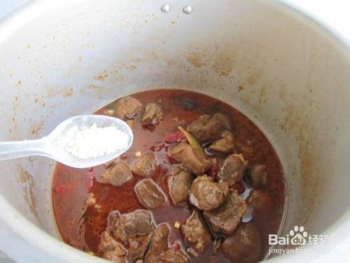 中火烧开放气阀开始响计时30分钟等高压锅能打开后,加鸡精拌均匀即可。也可以裕脂叮用锅慢红烧更入味,但时间要更长些