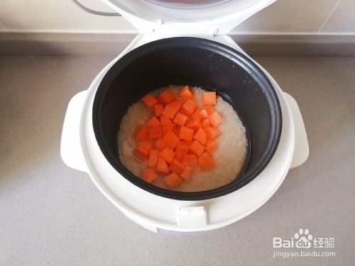 准备红薯和糯米,红薯清洗干净去皮,切丁
