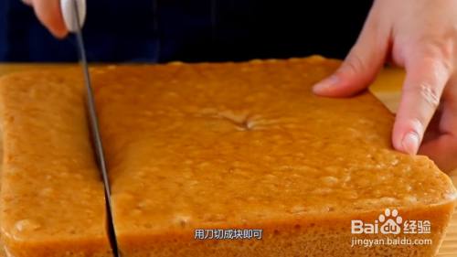 模具刷好油,倒入面糊,发酵30分钟后,放入锅中蒸35分钟,放冷后脱去模具,用刀切成块即可。