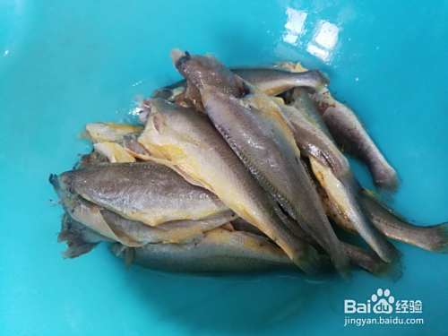 小黄花鱼去掉头,鱼鳞,内脏洗净,放入盆中。