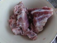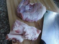 这是排骨和脊骨连接处洗净,准备一块五花肉要稍肥一些的,用来靠油。