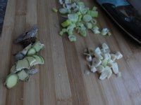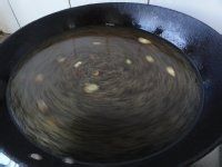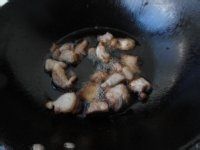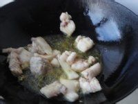 把五花肉靠到这样,油都出来了,放葱蒜,五香粉,爆香,放水,一定要多放,加盐,味精。