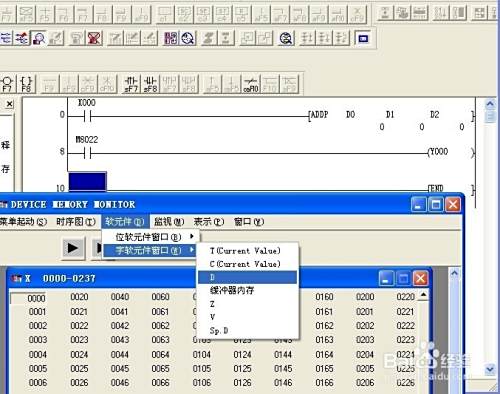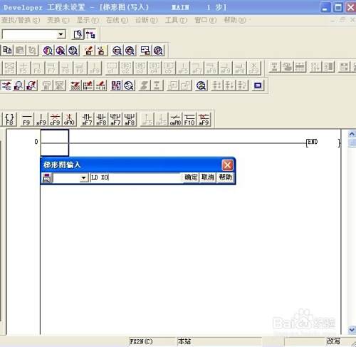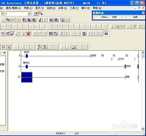 首先需要在程序中编写一条加法指令,我们用X0作为加法指令的执行条件,输入LD X0
