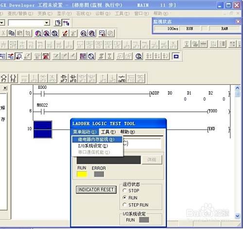 点击模拟测试窗口的启动菜单,然后选择继电器内存监视。