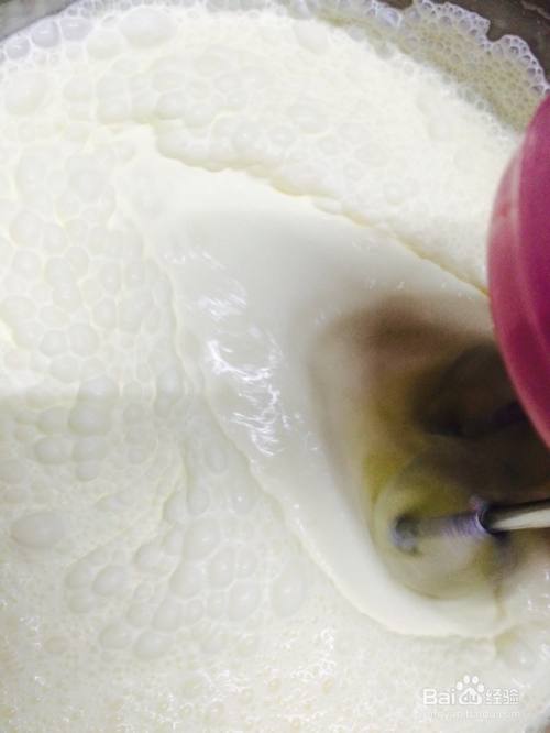 这是加入适量炼乳后用电动打蛋器打发ing…