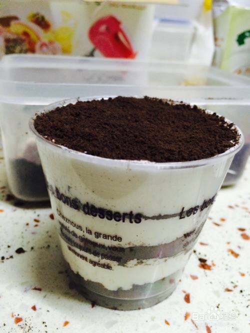 底层都要用木糠粉铺好,用勺子压实,再用裱花嘴把奶油挤上,我图方便用铁勺子弄奶油,0工具者可以这样。一层木糠粉一粉奶油,反复,最后一层撒上薄薄一层木糠粉即可。放冰箱冷藏。6个小时即可。