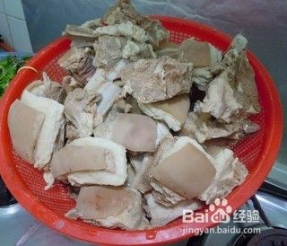 羊肋排洗净切块,大小看个人喜好。白萝卜滚刀块,同羊肉一起下锅焯水。白萝卜就是去掉羊肉的膻味,焯完水倒掉。羊肉用温水冲洗,却掉粘在上面的浮沫,翻入篮子里沥干水待用。