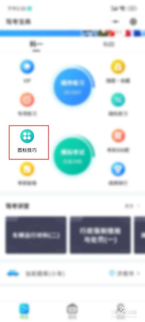 打开驾考宝典点击进入,选择图标技巧,点击进入