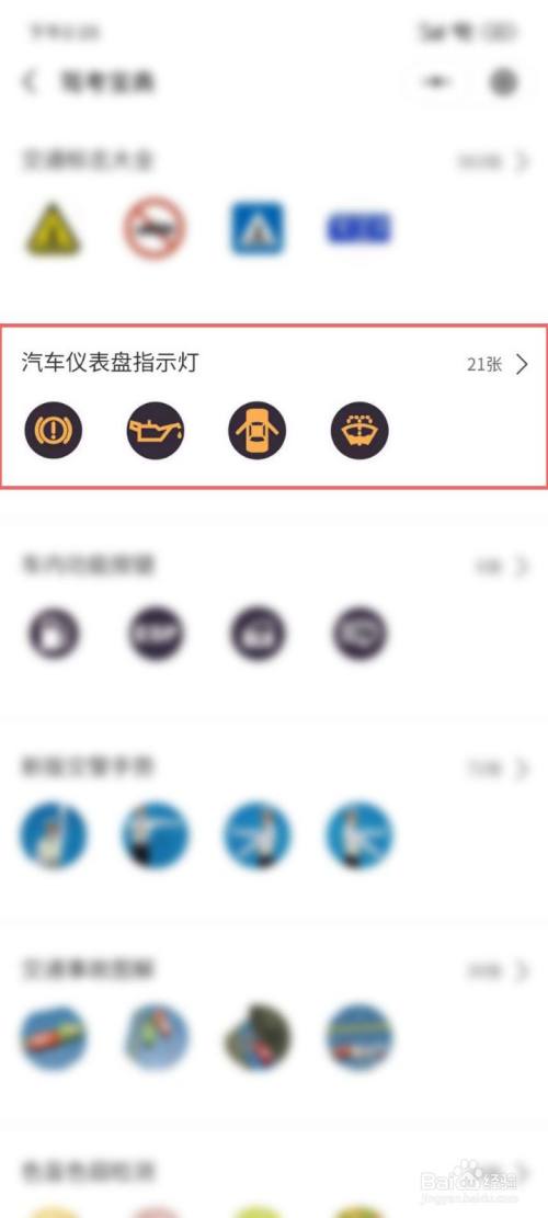 进入页面,选择汽车仪表盘指示灯,点击进入