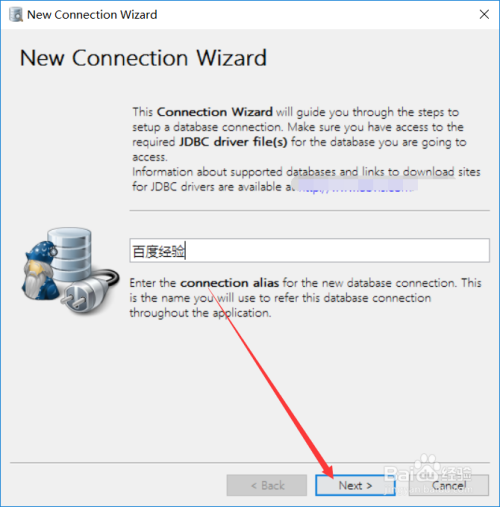 在New Connection Wizard界面上,输入数据库连接的名称,如下图所示。