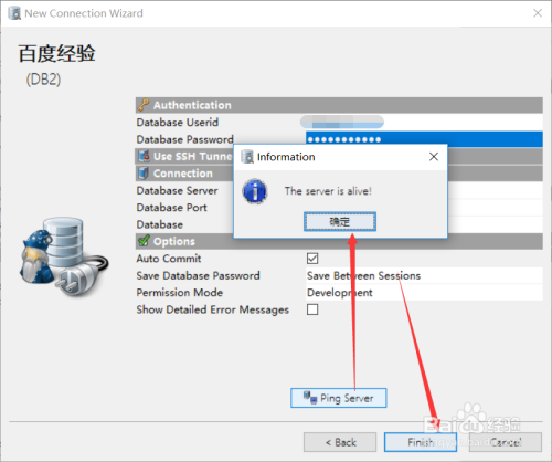 点击测试后,弹出The server is alive,表示配置的正确,然后点击Finish,如下图所示。