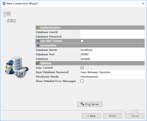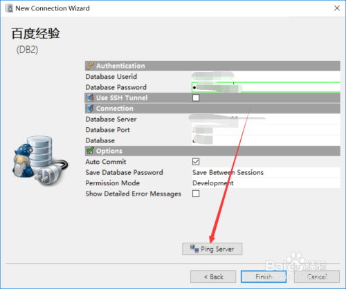 然后在输入你的数据库用户名,密码,数据库名称,数据库地址,然后点击下面的【ping Server】,进行测试,如下图所示。