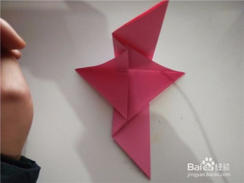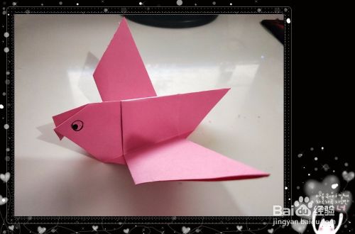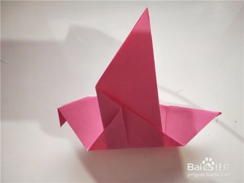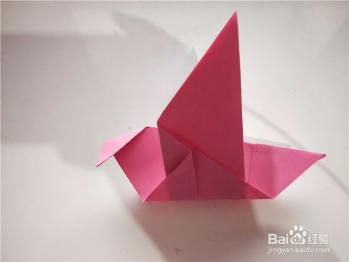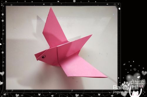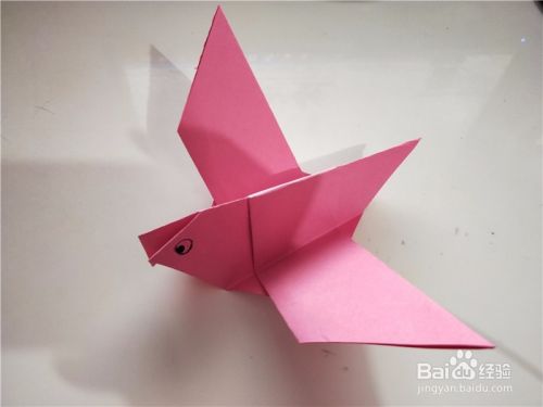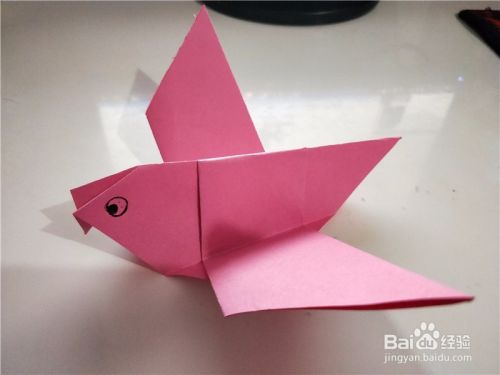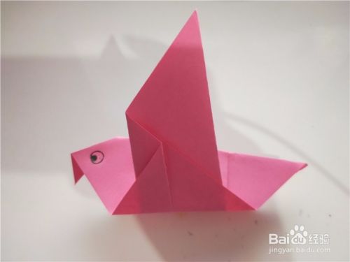 之后我们将小鸟的翅膀展开,即可折出展翅飞翔的小鸟,如图所示。