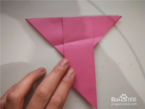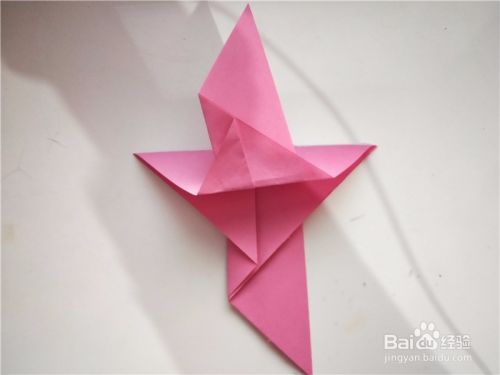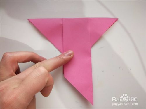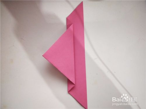 之后我们将上一步的尖部展开,从内部向下对折,如图所示。