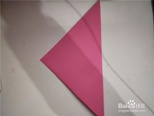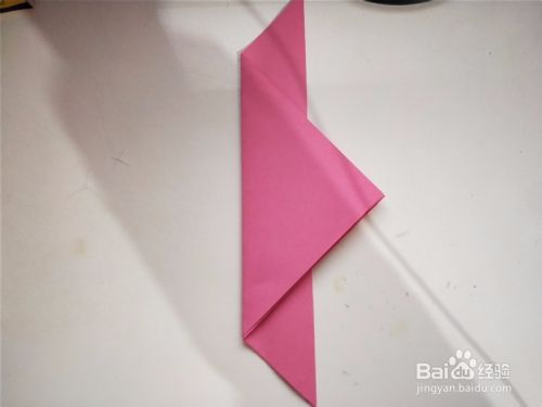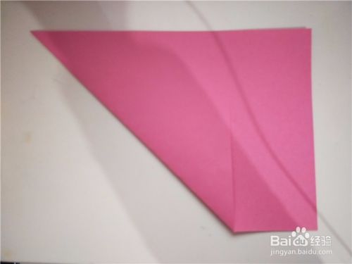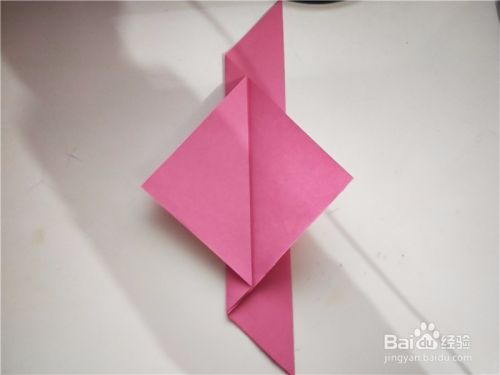 之后我们将折纸下面的部分,沿着第一张图的斜线向上对折,两面都向外侧对折,如图所示。