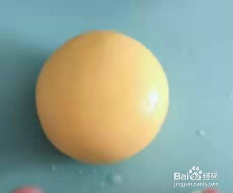 用黄色面团揉成圆形,做成小羊的身体。见下图
