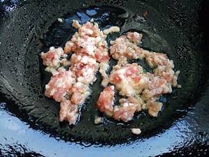 锅内留少许底油,放入肉末