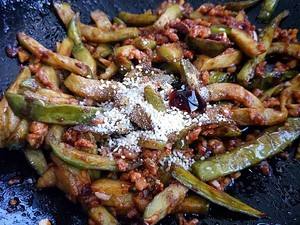 炒匀后放入青椒末