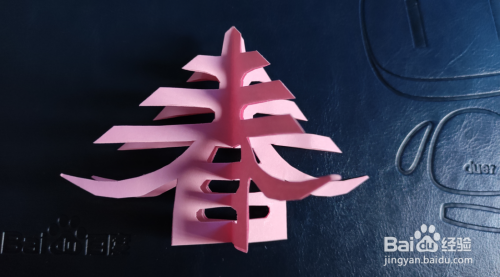 最后将折纸打开即可呈现出立体的“春”字效果。