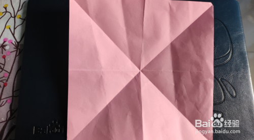 将方纸四角四边分别对折出纹路。