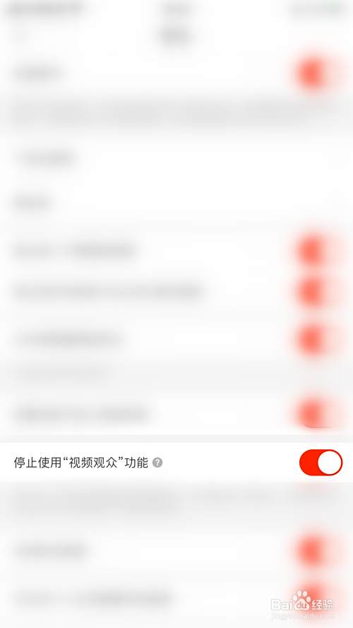 隐私设置界面点击“停止使用“视频观众”功能”后面的圆点