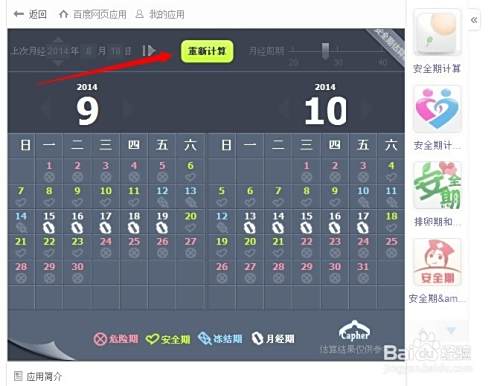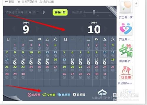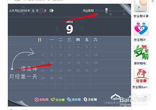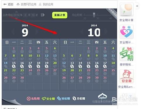 现在就重新出现了你的安全期日期,下面有颜色标识以便区分,呵呵