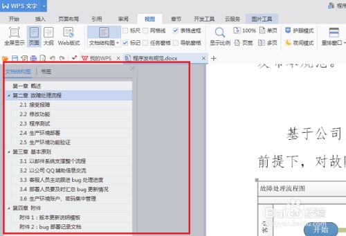 第三步可以看到文档结构图默认是隐藏的,点击让它显示在左侧,如下图所示:
