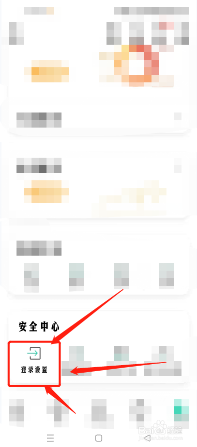 上滑屏幕下拉点击安全中心的‘’登录设置‘’。