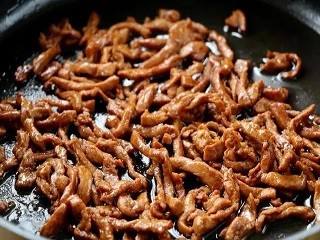 锅内倒入食用油,加热,放入里脊肉,炒熟。