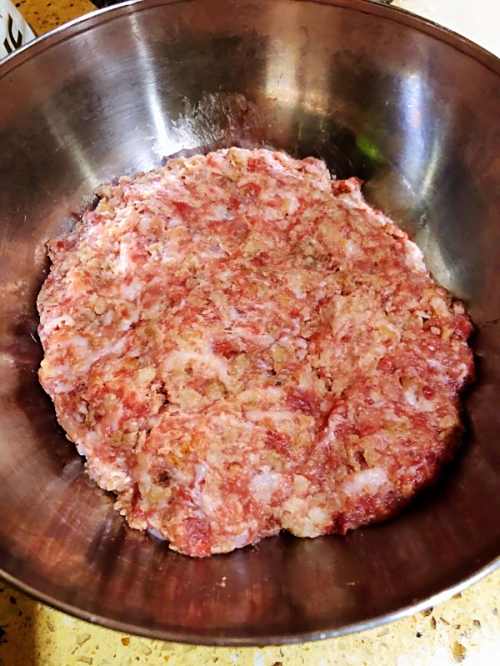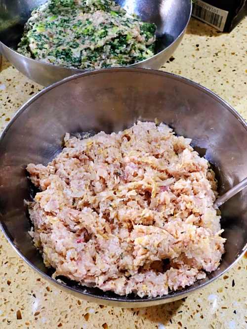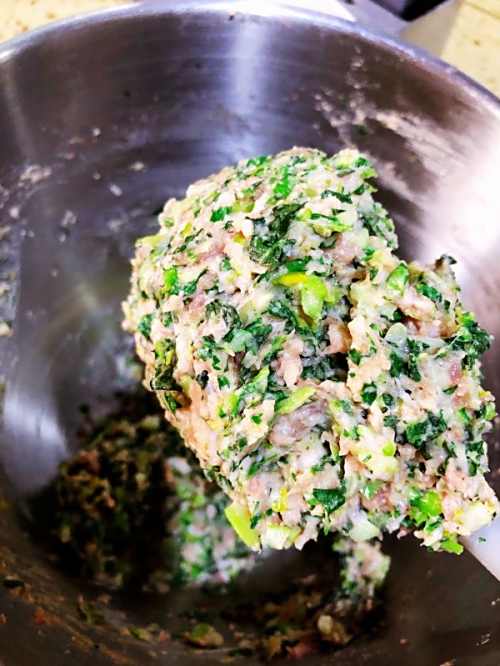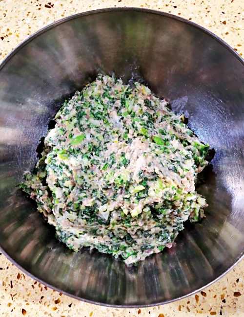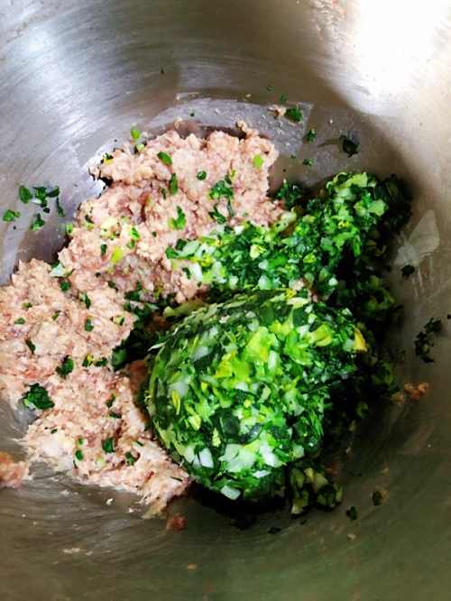 10剩下的一半肉馅 加入剁碎的酸菜 一点点糖