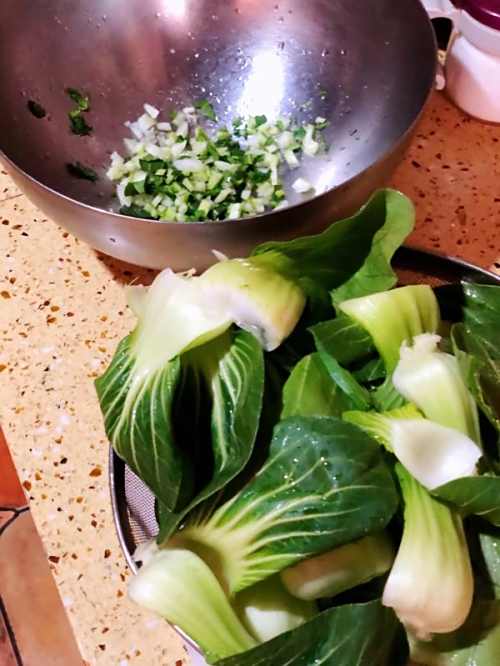 (也可以把白菜放入微波炉高火转30秒断生后剁 按自己喜好来都行) -