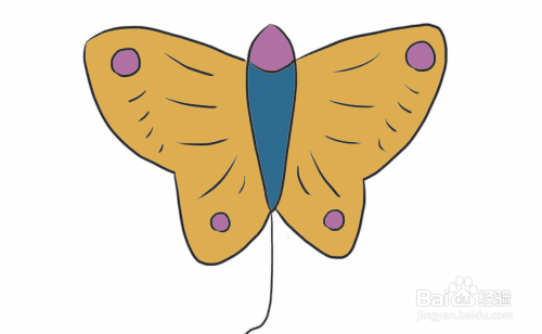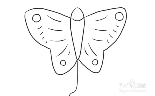 然后我们在蝴蝶的翅膀上边画出图案和纹路,在底下画出一条线。