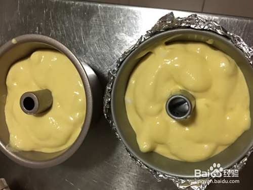 150度烘烤60-70分钟,根据模具大小来定。我做了两个4寸的烟囱模,烤了60分钟,中间顶部有点微微想开裂,盖了片锡纸