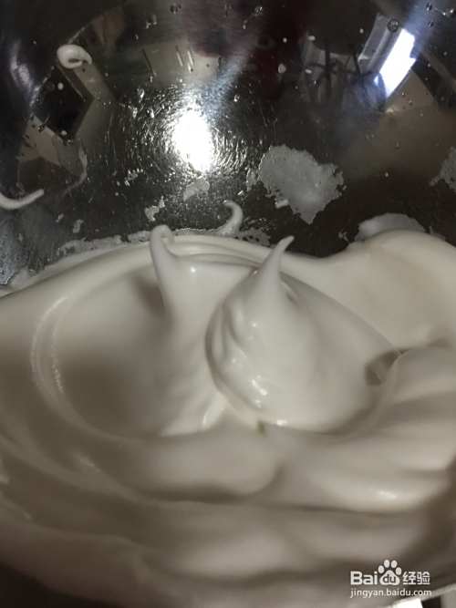 打发至湿性略微偏干性,纹路不会消失,倒扣不会流动