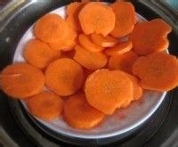 胡萝卜洗净去皮切薄片,放入锅中蒸熟。