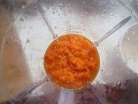 将胡萝卜放保鲜袋中,用擀面杖压成小块,放入料理机打成泥。