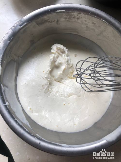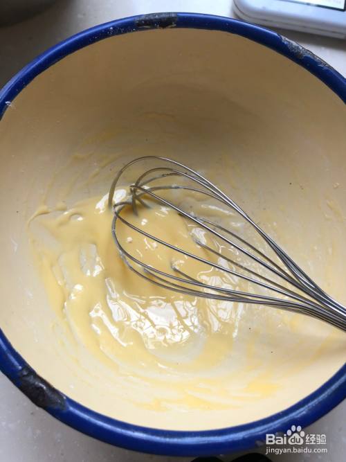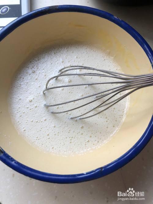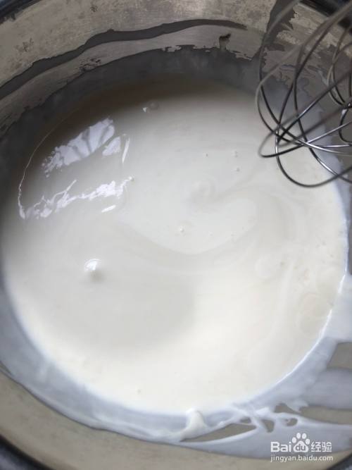 椰浆慢慢倒入蛋黄糊,边到边搅拌