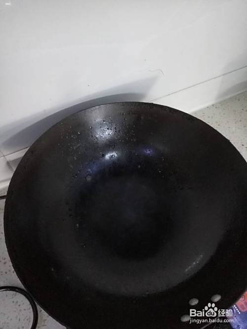 下面我们来热锅,放油,辣椒丁和蒜末下锅翻炒