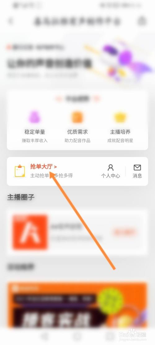 进入喜马拉雅,可以在创作的有声制作中,通过点击抢单大厅,来进行接单。