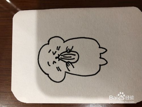 第四个我们再把他的小脚画出来以及他的可爱的小耳朵如图所是。