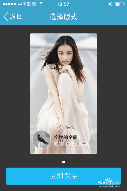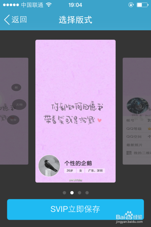 选择好照片之后,就会进入到板式选择界面中,然后再点击下面的SVIP立即保存就可以应用到个性名片中去。