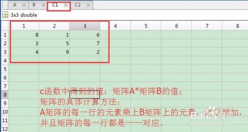 (1)矩阵的相乘是有规律的,相乘为矩阵中对应行乘以矩阵中对应列,并且每个元素和相加,最终得到结果,即使你之前没有学过,通过练习matlab你也会发现这个规律。