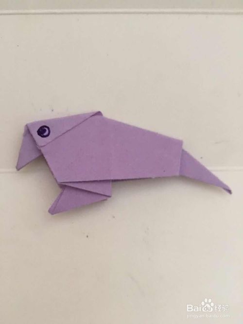 第六步 折叠完之后 把鹦鹉上下对折 上下折叠出鹦鹉的头部 然后再给小鹦鹉画上 眼睛就行了