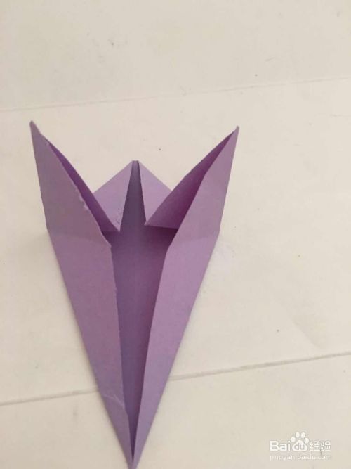 第四步 折叠完之后 取开 顺着折痕 向外捏上两个折