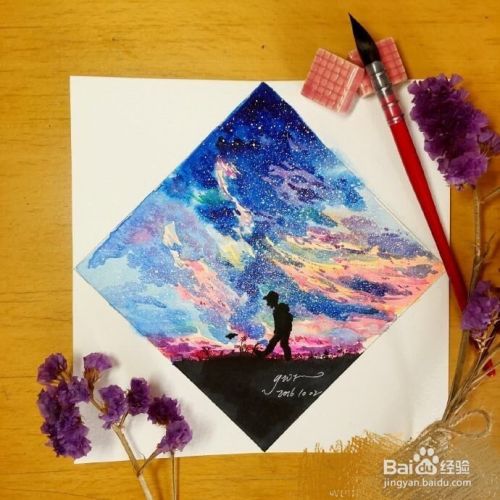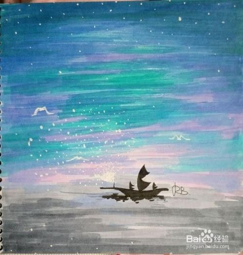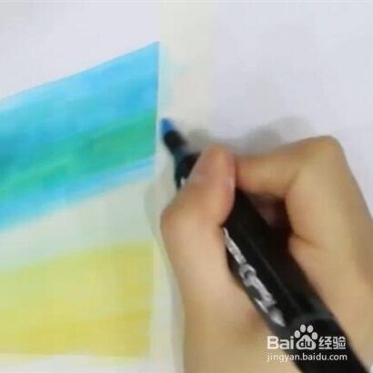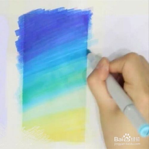 从底部往上用马克笔斜向上的方式依次涂上从黄色到蓝色的渐变色感。
