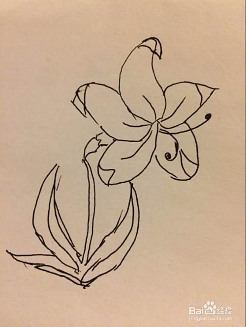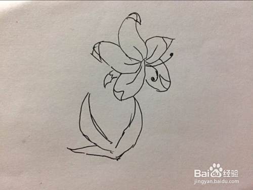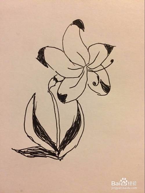 最后画出叶子和花朵之间的茎。最后把花瓣和叶子部分涂黑了。